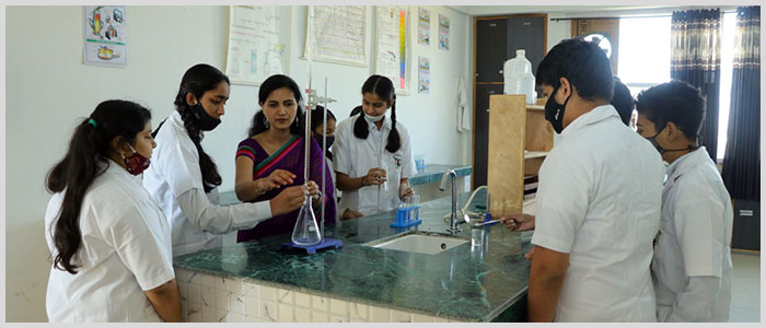 The chemistry lab is designed while keeping the statutory norms and safety standards it is well ventilated as well as spacious here a scientific attitude is developed in the students along with the ability to analyse collate compute and integrate deduce in the lab students learn to handle apparatus and chemicals, they improve their various understanding of various chemical reactions and processes.