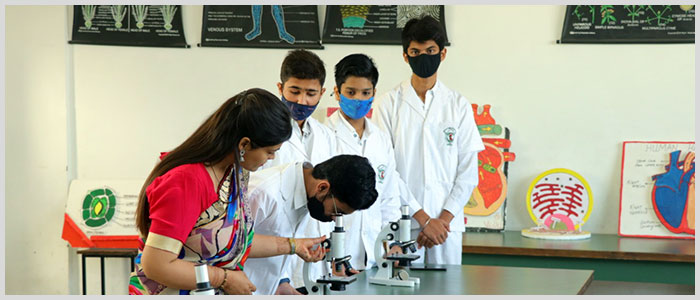 In a Biology lab the student study detailed structural, morphological, histological and physiological aspects of plants and animals. Study off slides under the microscope or studying a music museum specimen kindle’s that natural curiosity towards nature and instils the joy of learning the flora and fauna around us.