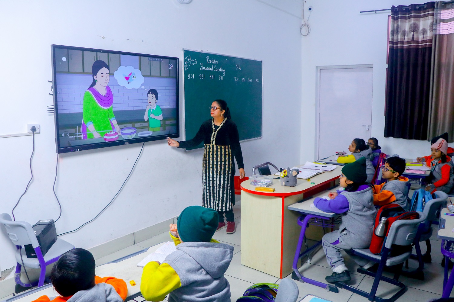 We at DPS has smart classrooms to empower teachers and students with technology right inside the classroom. The program enables the teachers to be digital use digital content/ resources as graphics, animations ,3D images and video clips in addition to the chalk and talk method of teaching in their day today teaching life .It enhances teaching learning process by making classroom more interactive and more interesting .Smart classroom is also used to share educational and motivational stories through videos and graphics.